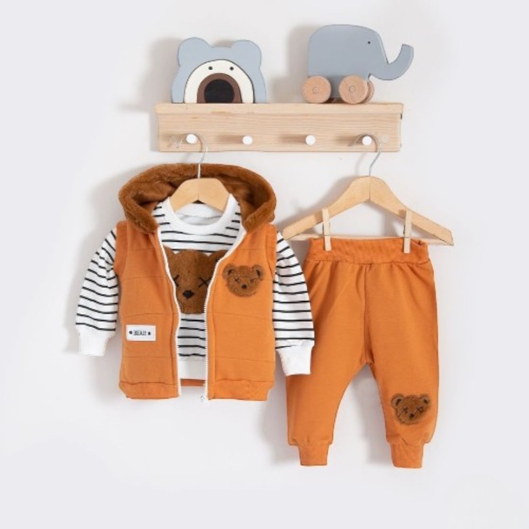 ÜRÜNÜMÜZ % 100 PAMUK OLUP, 1 ADET SWEAT 1 ADET PANTOLON 1 ADET KOLSUZ CEKETTEN OLUŞMAKTADIR.